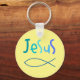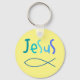 Un simple porte - clé Jésus, mais il y a le symbole du poisson et les mots Jésus dans les tons bleus. Un beau cadeau pour le chrétien.