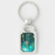 Or, clés antiques avec engrenages et cadrans accrochés sur chaînes dorées sur arrière - plan vert lumineux.