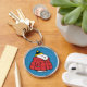 This charming, officially licensed Peanuts Snoopy Keychain is the perfect way to add iconic charm to your keys, backpack, or purse. The durable, circular metal keyring features a beloved illustration of Snoopy bundled up for the cold in a puffy red winter coat and a yellow-and-blue knit hat, set against a bright sky blue background.