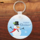 Snowman porte - clé est un porte - clé cool avec un mignon bonhomme de neige portant un foulard rouge et un casquette noir sur un arrière - plan bleu décolorant, qui profite de la saison hivernale pendant que des flocons de neige de différentes formes continuent de tomber. Idéal pour Noël ou toute autre occasion. © Matin 6