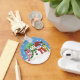 Un porte - clé à bouton rond avec une famille d'hommes de neige colorée © ArianeC Illustrations