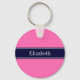 Porte-clés Solid Hot Pink #2, Navy Blue Ribbon Name Monogram