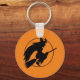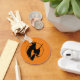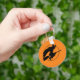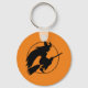 Une sorcière noire avec un arrière - plan orange vif, clair et coloré sur un Porte - clé.