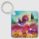 Paysage de Toscane coloré, capricieux, avec champs de fleurs et coq noir en jaune, fuchsia rouge, vert, violet, couleurs bleues. Peinture acrylique sur toile.Cool, design artistique pour fêtes de vacances d'été, réunions de famille, anniversaire, fêtes d'anniversaire ou à peu près n'importe quel événement que vous souhaitez !