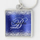 Porte-clés Sparkly Silver Glitter Sapphire Blue Foil Monogram