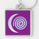 Lune argentée, croissant argenté, accompagnée d'une spirale de lumière, sur un profond arrière - plan de ciel du soir violet