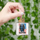 Porte - clés de police avec St Michael Arkhangel. St Michael est le saint patron de la police et ici il tient un bâton de police dans chaque main. Les menottes pendent de sa ceinture avec un arrière - plan de drapeau américain. Cadeau religieux de policier. La police à travers son coffre et grand ange s'envole. Défendez-nous dans la bannière de bataille. Porte - clés pour des policiers.