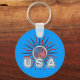 Centre unique Yin Yang conçu avec étoiles et rayures avec motif étoilé rouge, blanc et bleu derrière. Le texte argenté en bleu se démarque devant ce design patriotique.