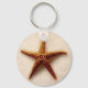 Beach gift keychains with starfish on the sand in earth tone beige and brown colors. A star fish key holder makes a great party favor for a beach or tropical theme party, birthday, event or keychains on a budget.