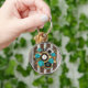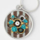 Porte-clés Steampunk Clock and Turquoise Roses on Striped