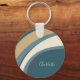 Abstract Marble Art in Teal and Tan Personalized Keychain