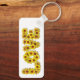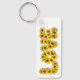 Add a touch of joy and happiness with this pretty sunflower "love" keychain. This pattern features various amber and red-orange colors. Express yourself by experimenting with different background colors.