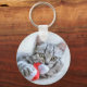 Porte-clés Tabby gris mou Chat avec Noël Casquette