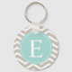 Porte-clés Tan White Chevron Turquoise Monogramme