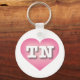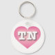 Ce porte - clé a un coeur rose avec un centre lavé de blanc contenant le TN gras, blanc, majuscules, l'abréviation officielle de l'état du Tennessee, l'état bénévole.