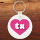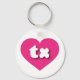 Ce porte - clé est doté d'un coeur rose chaud et vibrant contenant les caractères gras, blancs, arrondis, inférieurs coques tx, une abréviation ludique pour le Texas, l'état étoilé solitaire.