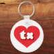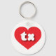 Ce porte - clé est doté d'un coeur rouge vif qui contient les lettres de coque inférieures, gras, blanches et arrondies, tx, une abréviation ludique pour le Texas, l'état étoilé solitaire.