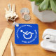 porte - clé handicapé carré avec un symbole de handicap blanc sur un arrière - plan bleu et blanc, texte circulaire.