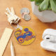 Père Noël Vit ! Les cartes de Noël de père Noël Train et autres cadeaux de vacances présentent une création unique de Keller Kard de Père Noël dans son train bleu et rouge contre un arrière - plan jaune orange et tenant un drapeau avec les mots, Père Noël Lives. Décorez votre maison, les boîtes aux lettres de votre ami ou remplissez ces boîtes sous l’arbre cette saison de fêtes avec un design vintage d’impression par blocs coupés à la main en linoléum. Père Noël Vit ! Prouvez-le à vos amis et votre famille avec notre Père Noël Train original!