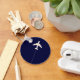 A graphic image of a white airplane with a straight dotted line ( flight path ). You can use the 'customize it' tool if you want to change the blue background color. A simple travel related design. A good suggestion for people who work for airlines and who travel on planes