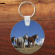 Un magnifique tableau de chevaux avec un ciel bleu brillant et de l'herbe verte.