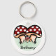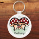 Porte - clé mignon avec trois champignons rouges, tabourets à grille avec points blancs. Ci-dessous est un modèle à ajouter un nom à personnaliser.