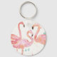 Cluster of flamingos in pink watercolor with teal watercolor splashes Artist : Anne Tavoletti