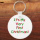 "C'est mon tout premier Noël !" est écrit en rouge et vert sur les sacs fourre-tout de vacances, les costumes et les tee-shirts pour les bébés qui fêtent leur tout premier Noël !