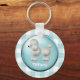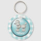 Porte-clés Turquoise and White Gingham & Poodle Key Chain