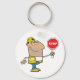 Un homme tenant un panneau d'arrêt pour diriger la circulation. Cette conception semble vraiment efficace sur ce Porte - clé