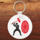 Ce dessin est un homme qui frappe un gong. L'homme a un grand maillot rouge qu'il balance dans le gong rouge. Cet homme qui frappe une conception de gong a l'air superbe sur ce Porte - clé