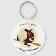 Porte-clés Une sorcière d'halloween conviviale sur le balai e