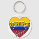Beau porte-clé avec coeur, orné du drapeau vénézuélien. Le texte indique: Venezuela girl L'arrière-plan est blanc en couleur. C'est sympa de faire un cadeau ou de vous montrer que vous êtes fière d'être Vénézuélien. Des couleurs : blanc, bleu, jaune et rouge.