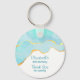 Une fête privilégie le porte - clé avec un design estival serein. Image turquoise / aquarelle vert aqua avec une bordure ondulée en faux or. Élégant et adorable.