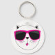 Porte-clés Visage de chat cool avec lunettes de soleil roses