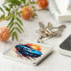 Une interprétation artistique d'une voiture de sport élégante aux couleurs vives et aux coups de pinceau enflammés qui transmettent énergie, vitesse et puissance, face à un arrière - plan spectaculaire au coucher du soleil.