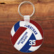 Ce porte - clé de volley-ball avec nom d'équipe présente l'image d'un volley-ball qui a marron, panneaux bleus et blancs, sur lequel vous pouvez customiser le nom du joueur et le numéro de maillot ainsi que le nom de l'équipe scolaire et de la mascotte - par katz_d_zynes