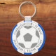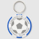 Votre propre nom et l'équipe de football que vous soutenez sur un Keyring. Bleu et blanc rayures thème de couleur.