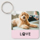 Ce porte - clé simple et adorable présente votre photo préférée de votre chien ou chat, avec le mot "amour" en utilisant un empreinte de patte en texte moderne noir sur un arrière - plan rose vif. Vous pouvez ajouter le nom de votre animal ou tout autre message au dos.