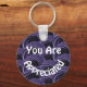 Express votre appréciation avec un porte - clé avec un motif abstrait moderne. Ce porte - clé de remerciement est orné de couches de cercles qui se chevauchent avec un motif violet et noir tourbillonné. "You Are Appreciated" forme un visage souriant au centre.