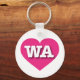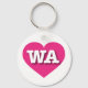Ce porte - clé est doté d'un coeur rose vif et chaud contenant les lettres chaudes, blanches et coques supérieures WA, l'abréviation officielle de l'état de Washington, l'état à feuillage persistant.