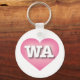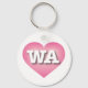 Ce porte - clé est doté d'un coeur rose et cool avec un centre blanchi contenant les lettres coques blanches et audacieuses WA, l'abréviation officielle de Washington, l'état à feuillage persistant.