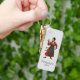 This keychain features iconic images from the Chinese classic "The Water Margin". Sun Erniang the Female Yaksha is on one side of the keychain, while the other side features an ancient wine jug with the label for Mount Liang, the outlaws' lair and a name that is synonymous with honor and justice.
