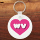 Ce porte - clé est doté d'un coeur rose chaud, plein de formes et de vitalité, qui contient des lettres coques basses wv aux formes arrondies et blanches, une version ludique de l'abréviation pour la Virginie-Occidentale, l'état de la montagne.