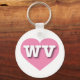 Ce porte - clé présente un coeur rose cool contenant les lettres coques en gras, blanches et supérieures WV, l'abréviation officielle de West Virginia, l'état de la montagne.