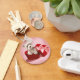 Joli chiot westie en boîte en forme de coeur rouge et arrière - plan rose nuageux, peint par l'artiste Maryline Cazenave.