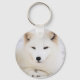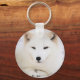A cute white arctic fox resting in the snow. The animal has white fur and brown eyes and is looking at you. A real diva!