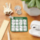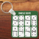 Add a name or a custom message to create the perfect personalized keychain for fans of playing dominoes and other games. This key chain features simple, hand-drawn style illustrations of white dominoes with black dots and printing against a green background.