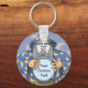 Vieux sorcier avec cape bleue et boule de cristal magique. Utilisez la photo du visage pour customiser. Texte personnalisé.