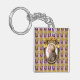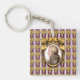L'oeuvre originale de ZoeSPEAK sur ce Porte - clé présente un portrait du compositeur de musique classique Wolfgang Amadeus Mozart. Le portrait est un ensemble de profil dans un cadre doré ovale orné. Le cadre est accroché sur un papier peint violet arrière - plan avec des grappes dorées de raisins en rangs, et des rayures verticales blanches et lavandes.